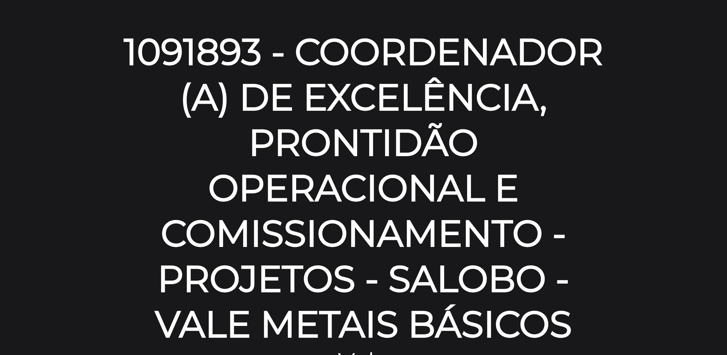 1091893 - COORDENADOR (A) DE EXCELÊNCIA, PRONTIDÃO OPERACIONAL E COMISSIONAMENTO - PROJETOS - SALOBO - VALE METAIS BÁSICOS