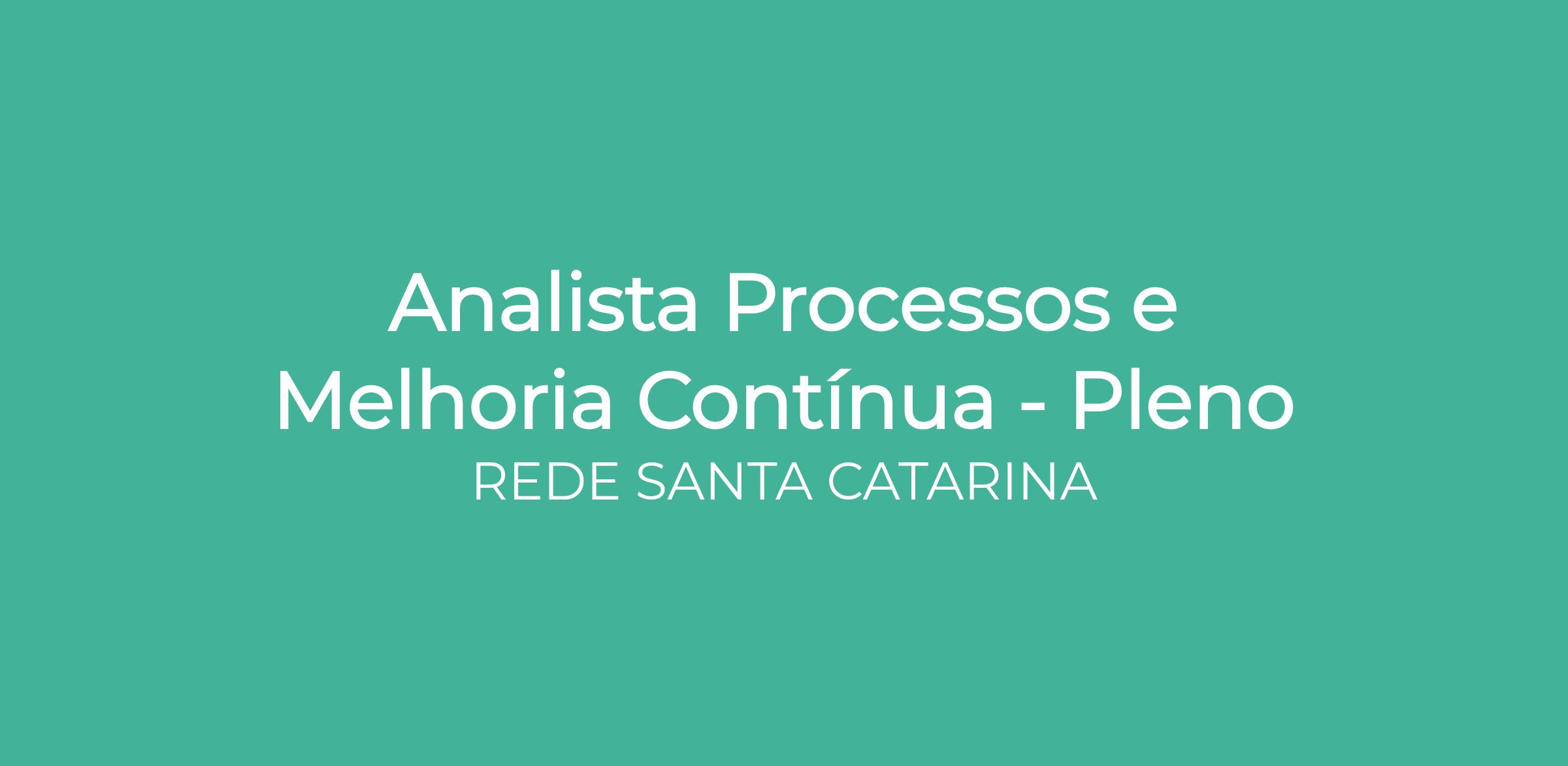 Buscamos um(a) Analista de Processos Pleno para atuar na área de Gestão da Qualidade, contribuindo para o aprimoramento contínuo dos processos internos e para a consolidação da cultura de excelência organizacional da Rede Santa Catarina.