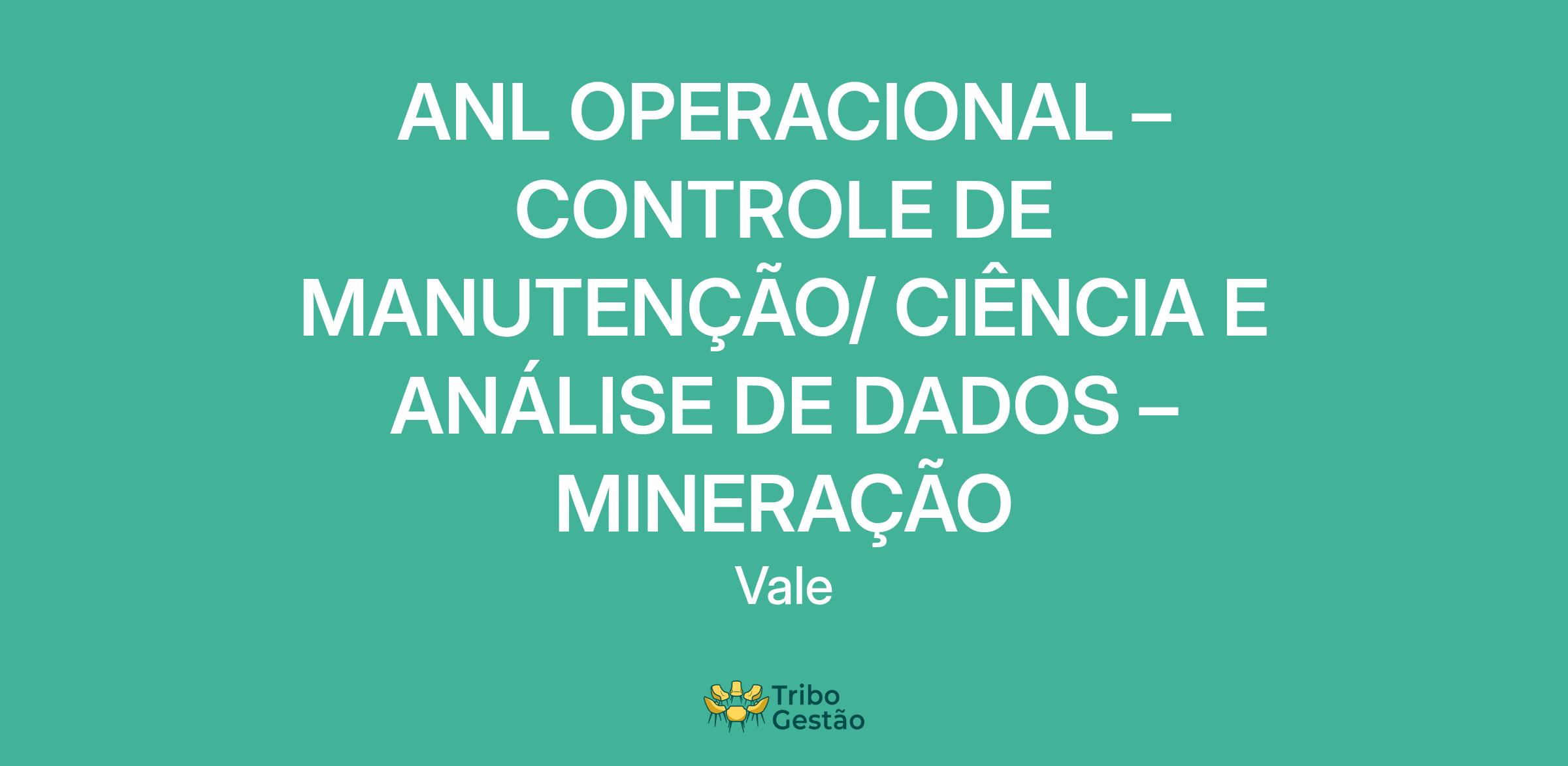 ANL OPERACIONAL – CONTROLE DE MANUTENÇÃO/ CIÊNCIA E ANÁLISE DE DADOS –MINERAÇÃO