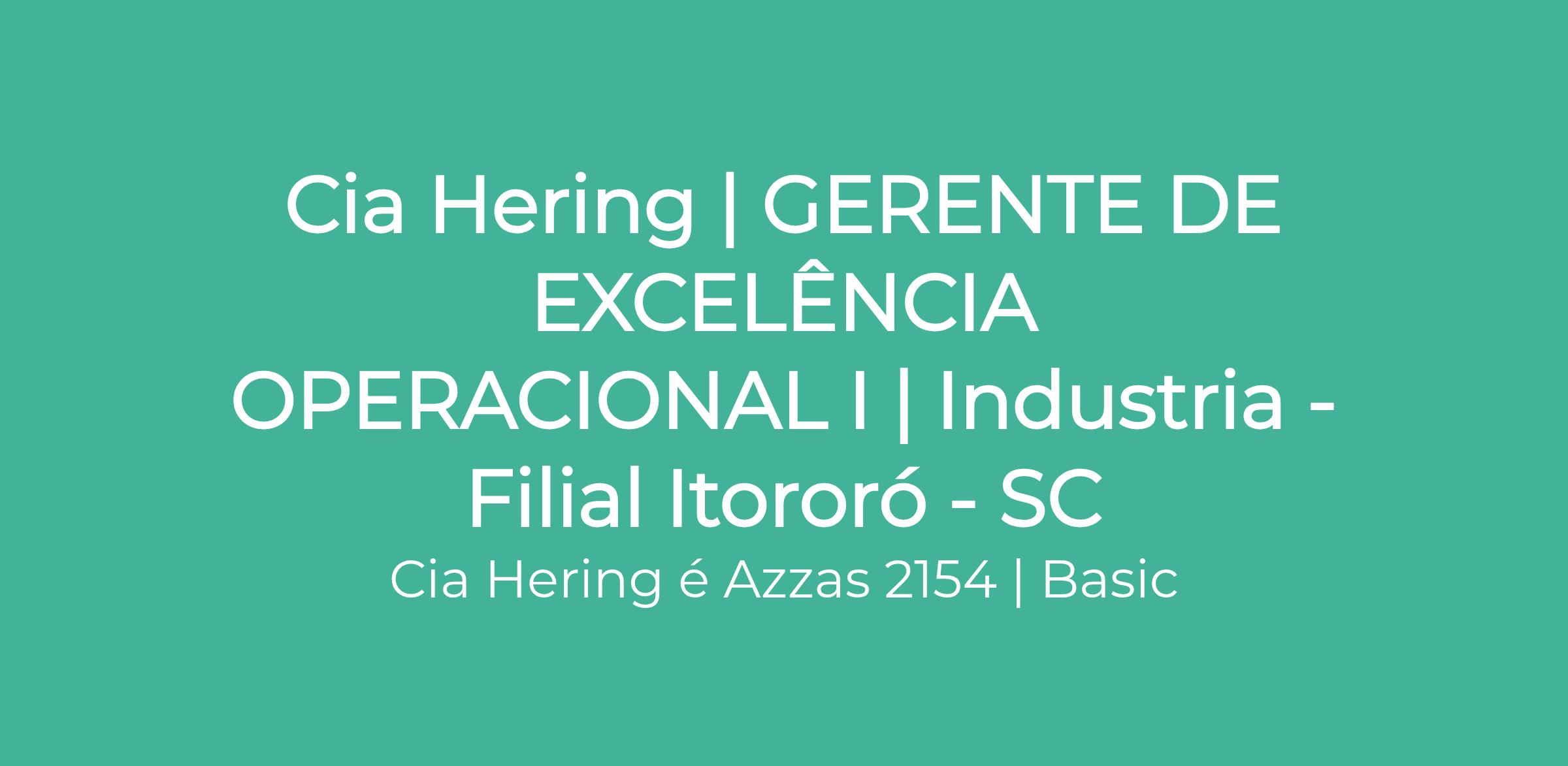 Cia Hering | GERENTE DE EXCELÊNCIA OPERACIONAL I | Industria - Filial Itororó - SC