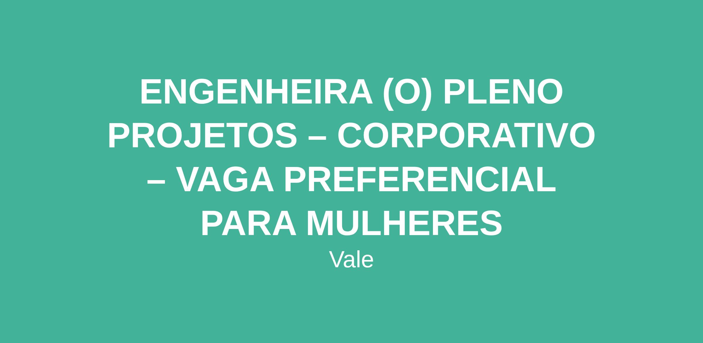 ENGENHEIRA (O) PLENO PROJETOS – CORPORATIVO – VAGA PREFERENCIAL PARA MULHERES