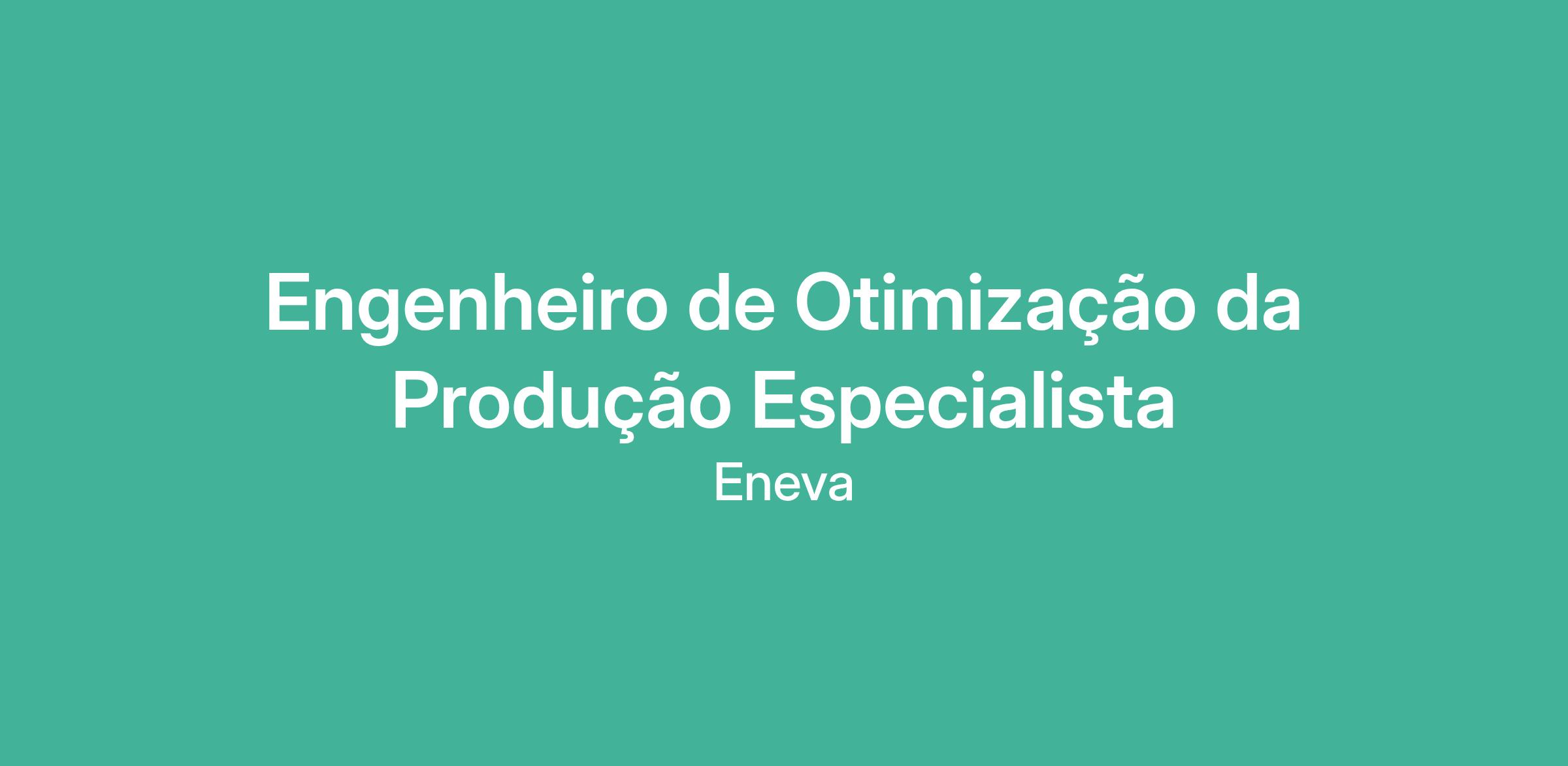 Se você quer atuar como Engenheiro de Otimização da Produção Especialista temos um novo desafio para você!